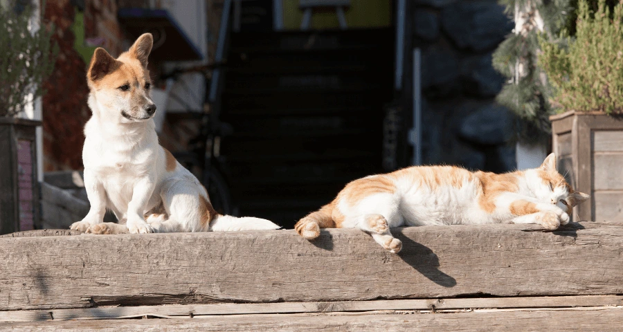 Pets can get sunburnt just like us, particularly those with areas of pink skin on their noses, ears or bellies. Repeated sun damage can lead to nasty skin cancers, so regular protection against sunburn is best. In summer, prevent at-risk pets from sunbathing between 9:30 am – 4:00 pm. If they’re going to be outside during these hours, regularly apply a pet-safe sunscreen.
